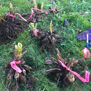 1. Dig up your dahlia tubers and label them: