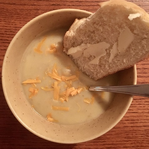 10. Serve into soup bowls with grated cheese and chives or green onion to garnish.